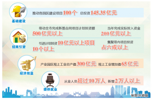 《方案》提出,今年通過(guò)產(chǎn)業(yè)帶大力開(kāi)展產(chǎn)業(yè)集聚招商,帶動(dòng)全市完成新簽合同項(xiàng)目計(jì)劃投資額500億元以上,當(dāng)年完成實(shí)際投入資金200億元以上,引進(jìn)計(jì)劃投資10億元以上項(xiàng)目10個(gè)以上,其中集聚帶內(nèi)項(xiàng)目投資占六成以上。從而使集聚帶產(chǎn)業(yè)園區(qū)規(guī)上工業(yè)總產(chǎn)值達(dá)300億元,規(guī)上工業(yè)增加值達(dá)65億元《方案》還指出,到今年底集聚帶從業(yè)人員超過(guò)10萬(wàn)人,新增2萬(wàn)人以上,成為我市吸納勞動(dòng)力就業(yè)的重要支撐。