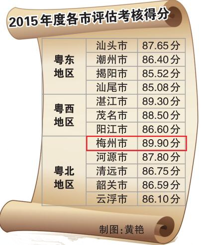 昨日,省政府在廣東省進一步促進粵東西北產(chǎn)業(yè)園區(qū)提質增效工作現(xiàn)場會上通報了2015年促進粵東西北地區(qū)振興發(fā)展工作完成情況、2015年度評估考核情況,梅州以89.90的考核評分位居粵東西北12市首位。