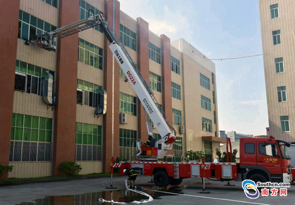 此次演練假設(shè)在梅縣高新技術(shù)產(chǎn)業(yè)園區(qū)內(nèi)量能新能源科技有限公司廠房B二樓裝配車間員工因操作不當(dāng),造成電池原料著火,火勢(shì)迅速蔓延。梅州消防支隊(duì)指揮中心接到報(bào)警后,迅速調(diào)集官兵趕往現(xiàn)場(chǎng)進(jìn)行處置,各相關(guān)部門接到應(yīng)急辦通知后迅速趕往現(xiàn)場(chǎng)。同時(shí),省公安消防總隊(duì)啟動(dòng)跨區(qū)域聯(lián)合作戰(zhàn)預(yù)案,調(diào)動(dòng)河源市公安消防支隊(duì)一個(gè)滅火編隊(duì)到場(chǎng)支援。各參戰(zhàn)力量通力合作,展開排煙、滅火、供水、救援等工作,歷時(shí)一個(gè)小時(shí)成功完成火災(zāi)撲救演練。